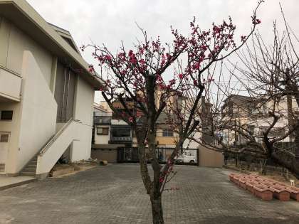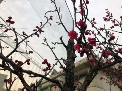 寒さの中でも、梅の花が少しずつ開いてきています。