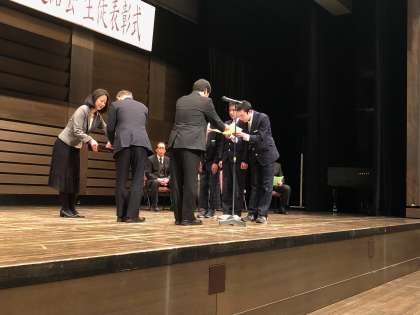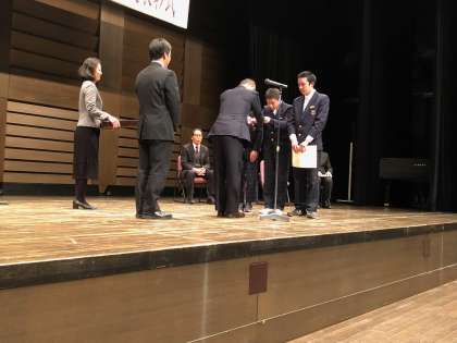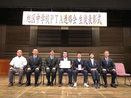 旭区4中学校の生徒の代表が表彰されるのですが、本校からは毎朝正門に立って元気よくあいさつをしてくれる「生活委員」が表彰をうけました。