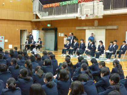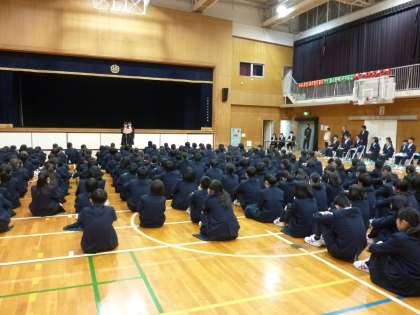 3年生が卒業し、1・2年生だけの全校集会です。