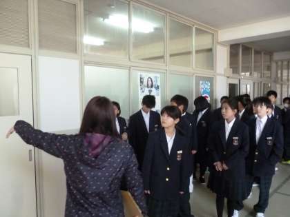 担任の先生から校内のさまざまな部屋などを案内してもらい、説明してもらいました。