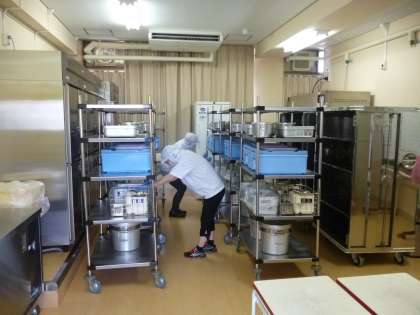 写真は配膳室での作業の様子です。