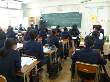これまでに学習した、文字式の計算の復習をしています。 前に出てきて答えを導き出し、答え合わせをします。