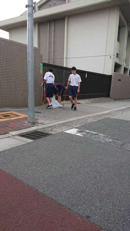 男子バスケットボール部が早朝に、外周清掃をしてくれました。