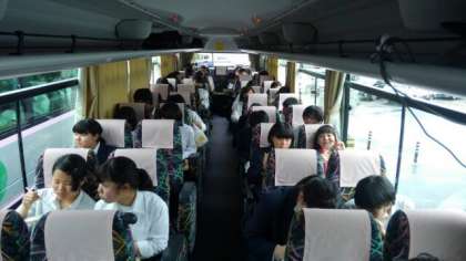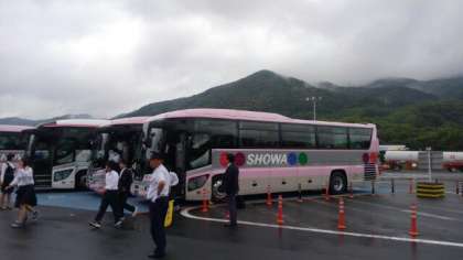 3日間お世話になる昭和バス、ピンク色の車体が可愛いです。
