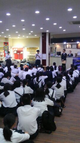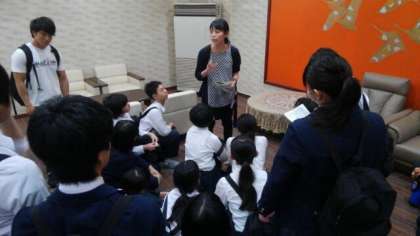 雨天のため、予定より早めに宿舎に入り、ロビーで入宿式を行いました。