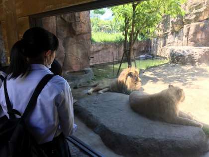 校外学習、天王寺動物園の体験です。 ライオンが間近に見えてドキドキです。