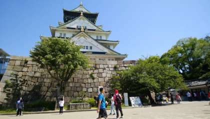 大阪城天守閣の体験です。今日も、外国人の観光客の方が大勢来られて、賑わっています。