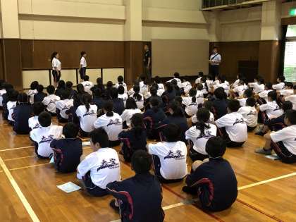クラスビルディングを終え、体育館で入所式です。 司会の生徒も、代表あいさつの生徒も、とても立派です。