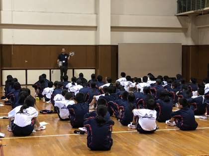 あいにくの雨ですが、これからカレーライスを作ります。説明を聞いて、スタートです。