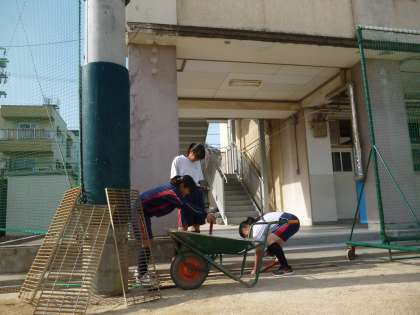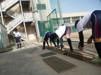 放課後、部活動の前に、ソフトボール部のみなさんが、側溝とトンボ倉庫をきれいにしてくれていました。