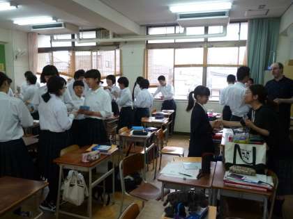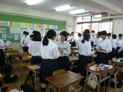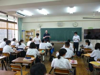 毎週水曜日は、C-NET(大阪市英語指導員)のManuel Joaquin先生が本校にやってきます。今日は3年生の授業に入りました。