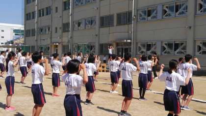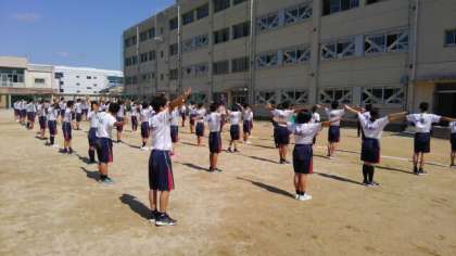 体育の授業での練習の成果を発揮し、大きな動作で行っています!