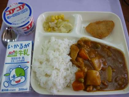 給食では、食べるタイプの「ヨーグルト」と、飲むタイプの「はっ酵乳」が登場します。