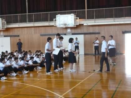 始業式ではまず、夏休みに大健闘した生徒の表彰がありました。