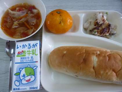 いつもの給食のマカロニグラタンは、牛乳やクリーム、小麦粉を使っています。