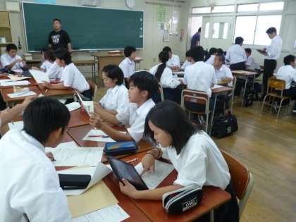 今日はグループごとでタブレットを使い、調べ学習をしました。