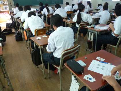 今日はヒューマンキャンパス高等学校からゲストティーチャーをお招きし、トランプを使って自分に適した仕事について考える学習をしました。