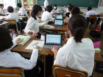 教育センターの指導主事の方が来られ、タブレットなどのICT機器を活用した授業を見学されました。