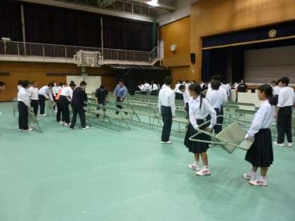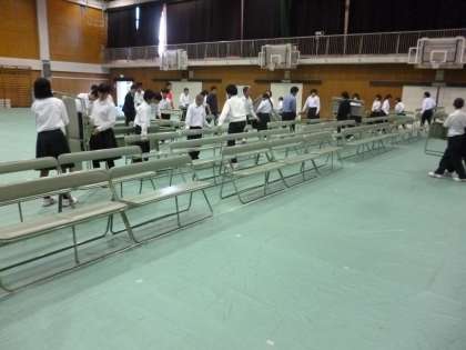 今日の午後、1年生が体育館の会場設営をしてくれました。
