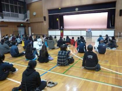 「あきらめないこと」というテーマで、「いじめより楽しいことがあればいじめをしない!」「夢を持つことのすばらしさ」など、感動的なお話をしていただきました。