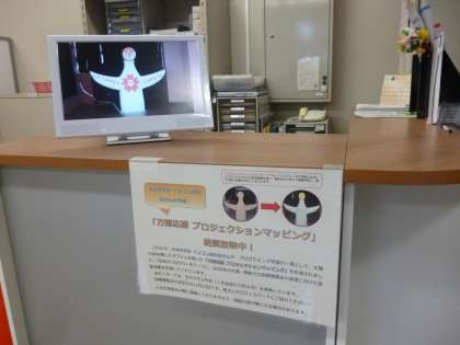 パソコン部のプロジェクションマッピングを撮影した動画が、区役所入口付近で放映されています。