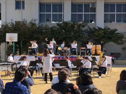 11月3日(土)に大宮西小学校で行われた「中宮ふれあいデー」において、吹奏楽部がオープニング演奏をしました。