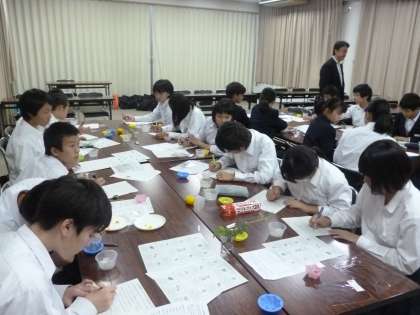 昨年に引き続き、前期・後期の保健委員が、香育出前授業として、講師先生をお招きし、アロマ石けんとアロマポット(芳香剤)づくりにチャレンジしました。