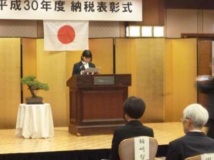 今日は太閤園で行われた旭税務署管内の納税表彰式で、その作文を朗読しました。