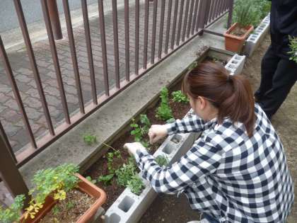 北館の裏に、以前花壇をつくってハーブ類を植えたのですが…