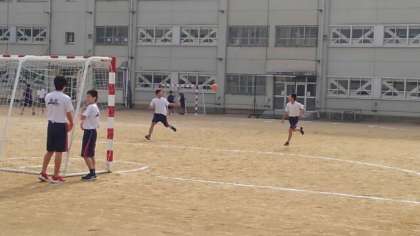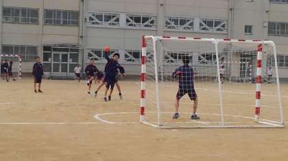 ハンドボールの授業です。