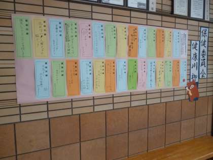 保健委員会で「健康川柳」を作成しました。玄関ピロティに掲示中です。