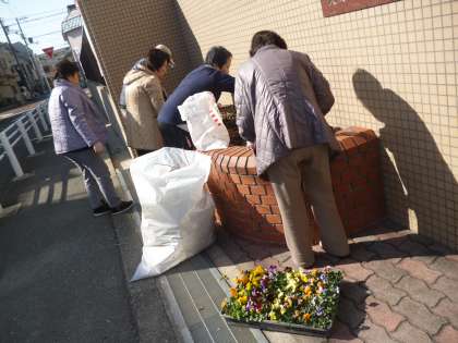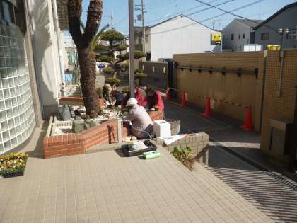 今日は卒業式に向けて、正門周辺の花壇に花を植えていただきました!