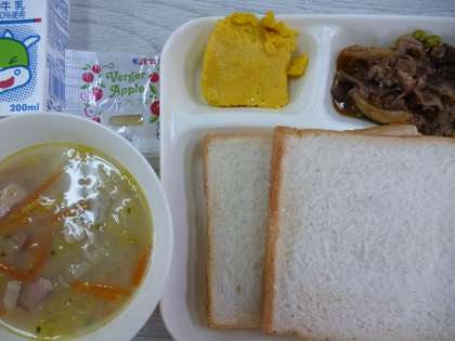 今日は、卵、牛乳、砂糖にクリームとかぼちゃペーストを使ったかぼちゃのプリンです。