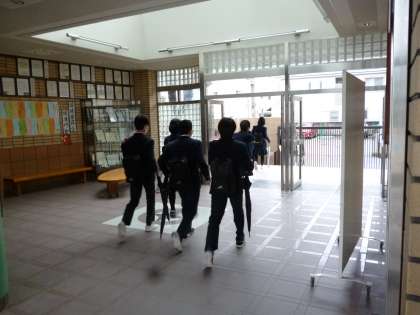 3年生で公立高校の一般選抜に出願する生徒が給食後、各高校へ向けて出発しました。