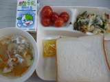 ほたて貝のグラタン だいこんのスープ プチトマト 食パン 牛乳 ママレード ほ...