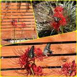 正門を入ったところに咲いているヒガンバナに、チョウチョが集まって来ていました。