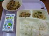 いか天ぷら スープ煮 きゅうりのピクルス ヨーグルト こくとうパン 牛乳 今日...