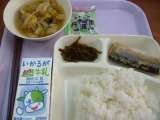 さんまのみぞれかけ 五目汁 茎わかめのつくだ煮 ソフト黒豆 米飯 牛乳 今日は...