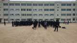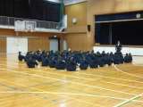今日は3年生は格技室に集合です。 卒業式の式場に入場直前。 最後に歌の練習です。