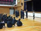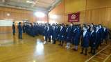 3年生が卒業し、1・2年生だけの全校集会です。 今日は次年度の前期生徒会役員立会...