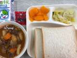 ビーフシチュー キャベツのピクルス みかん(缶づめ) 食パン 牛乳 いちごジャム...