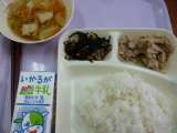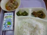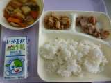 鶏肉のてり焼き じゃがいもとあつあげの煮もの ごまかかいため 米飯 牛乳 かつ...