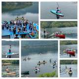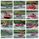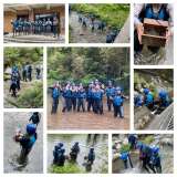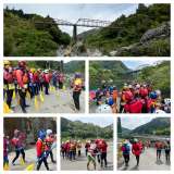 シャワークライミングのグループは、川を歩いて上って行きました。 流れの激しい場所...