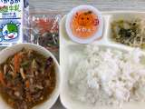マーボーはるさめ チンゲンサイともやしの甘酢あえ アーモンドフィッシュ みかんゼ...
