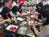 北野工房にて本革のレザーコインケースづくりです。 みんな暑さも忘れて一生懸命です...