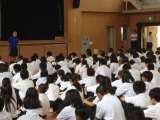7月18日木曜日 3限 全校生徒を対象に健全育成教室(非行防止教室)を体育館で実...