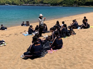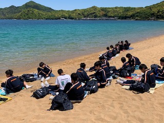 浜辺で昼食を取ります。景色も空気も素晴らしいです。