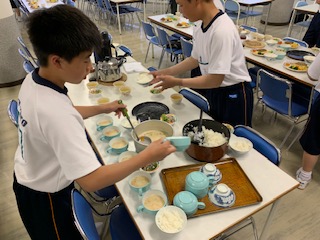 これから、食事係が夕食の準備をしています。