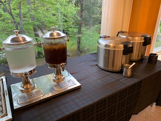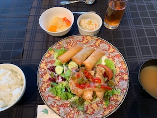 夕食の時間です。ごはん、飲み物のみ、おかわり自由です。お腹いっぱい食べてください。