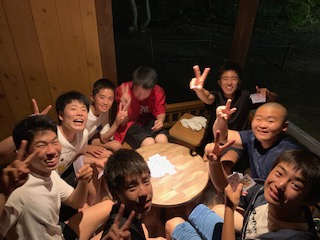 自由時間に、温泉の足湯につかりながらのトランプです。